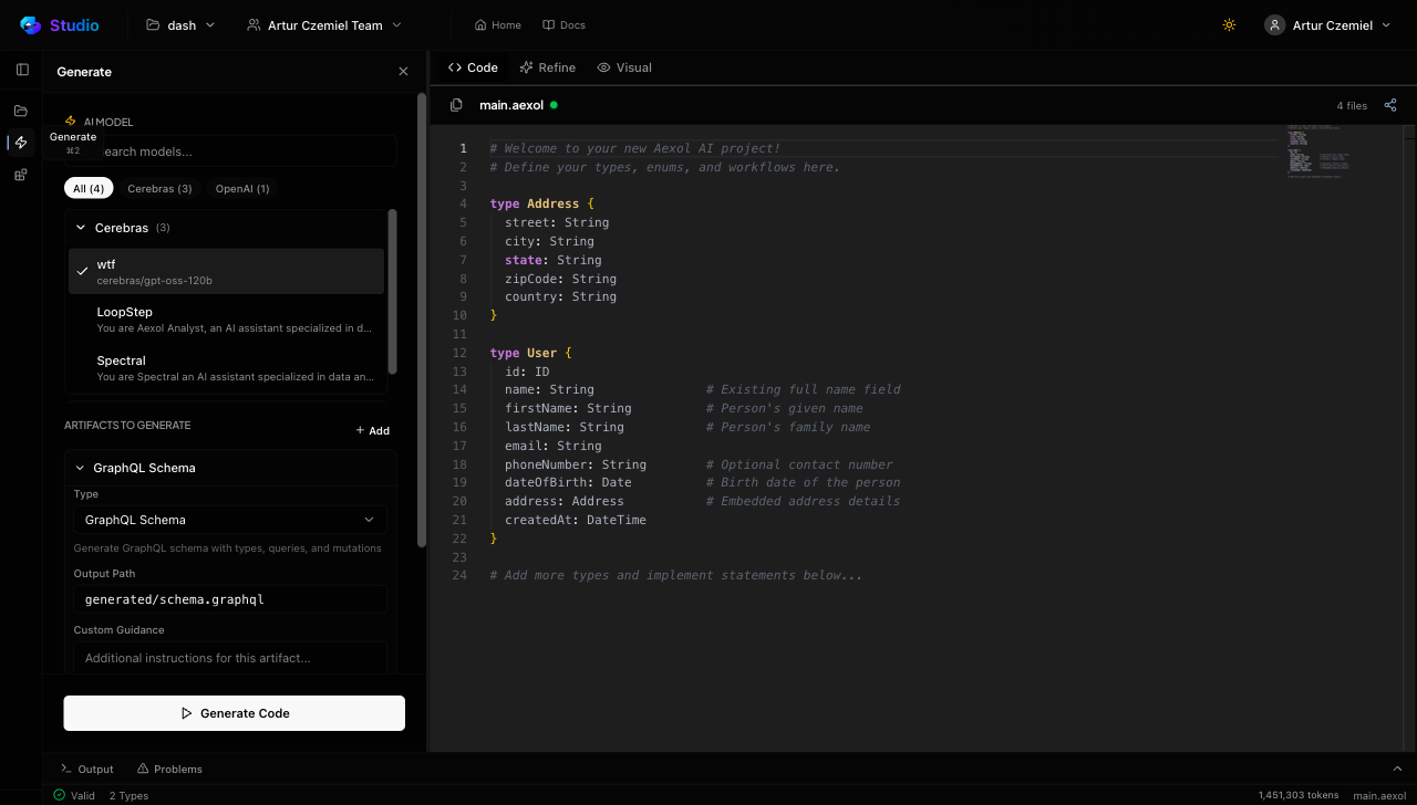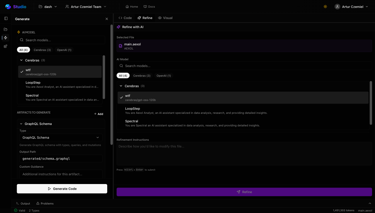 This iterative loop — write, generate, review, refine — is where Aexol really shines. Instead of spending hours hand-writing schemas and types, you spend your time on the high-level design decisions while Spectral handles the implementation details.